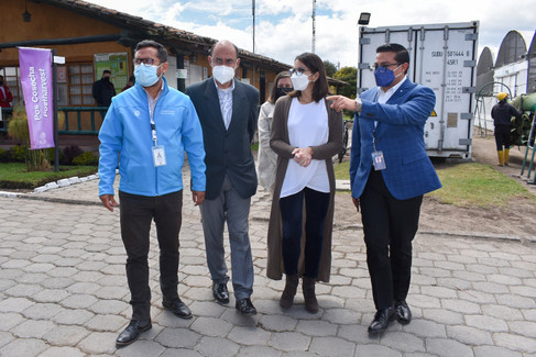 Ximena Garzón, Ministra de Salud, acompañada del Gobernador de Cotopaxi, Oswaldo Coronel y Alejandro Fabara, Jefe Político de Latacunga recorrieron el punto de vacunación en la empresa florícola EQR, ubicada al norte del cantón Latacunga.